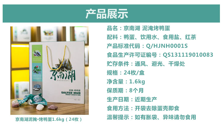 所屬分類:京南湖·泥腌系列烤鴨蛋