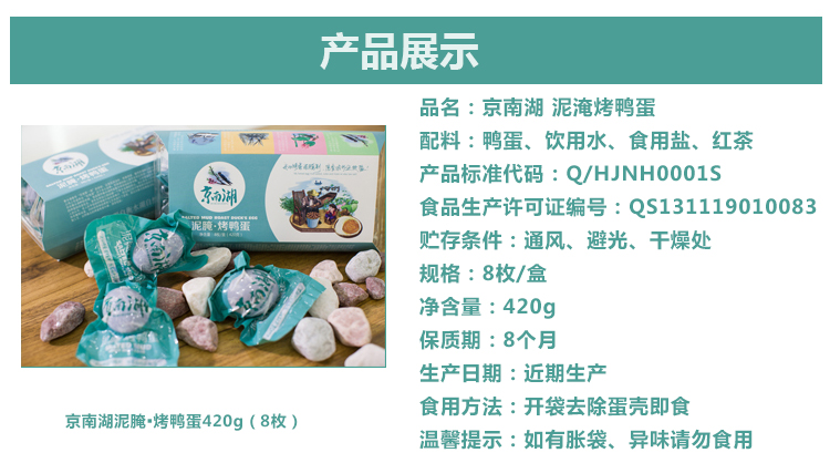 所屬分類:京南湖·泥腌系列烤鴨蛋